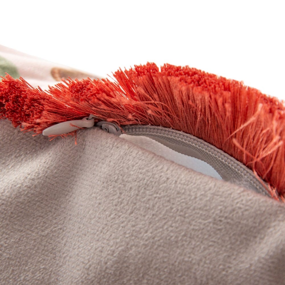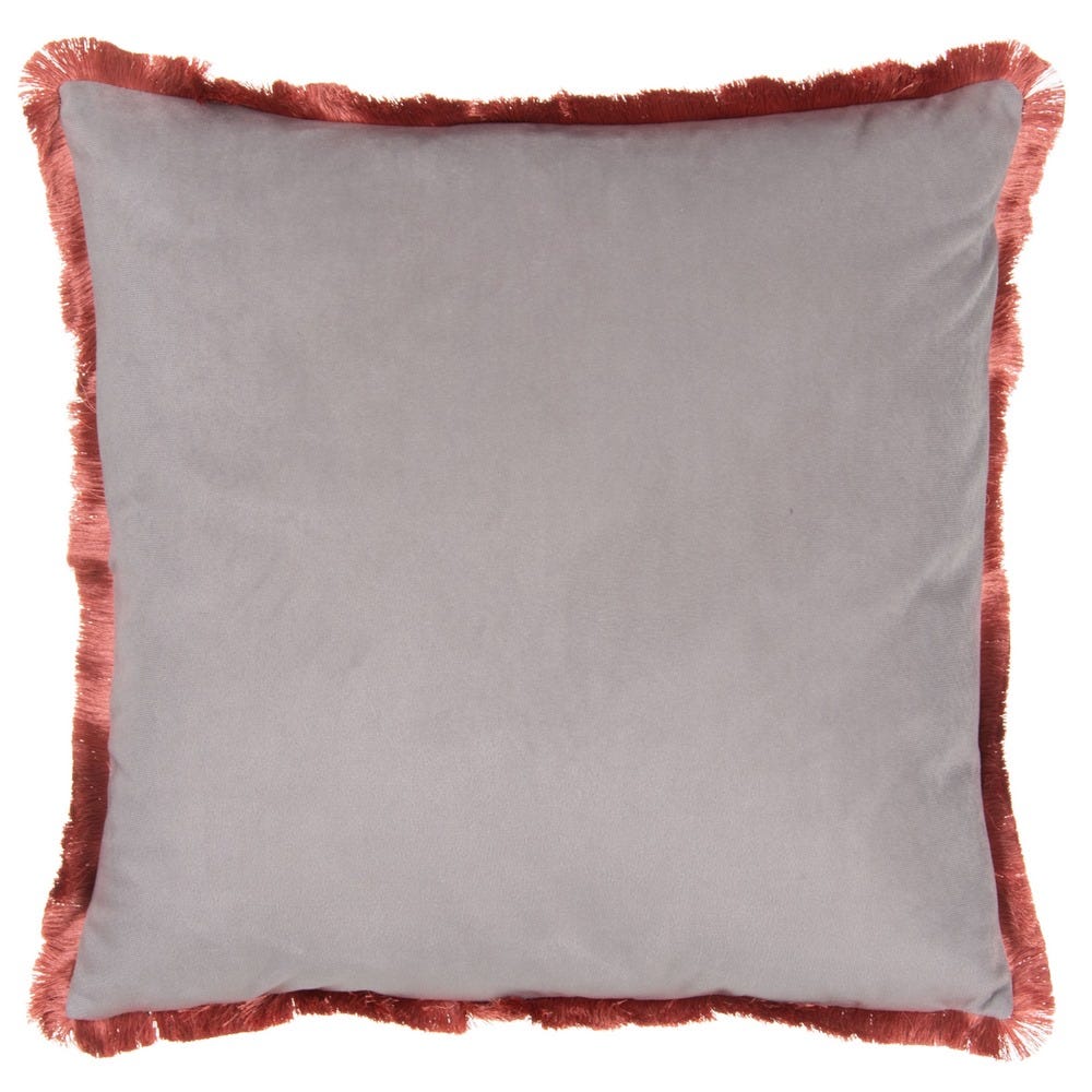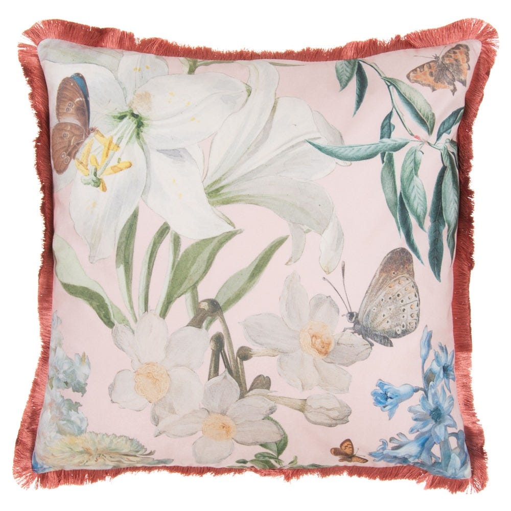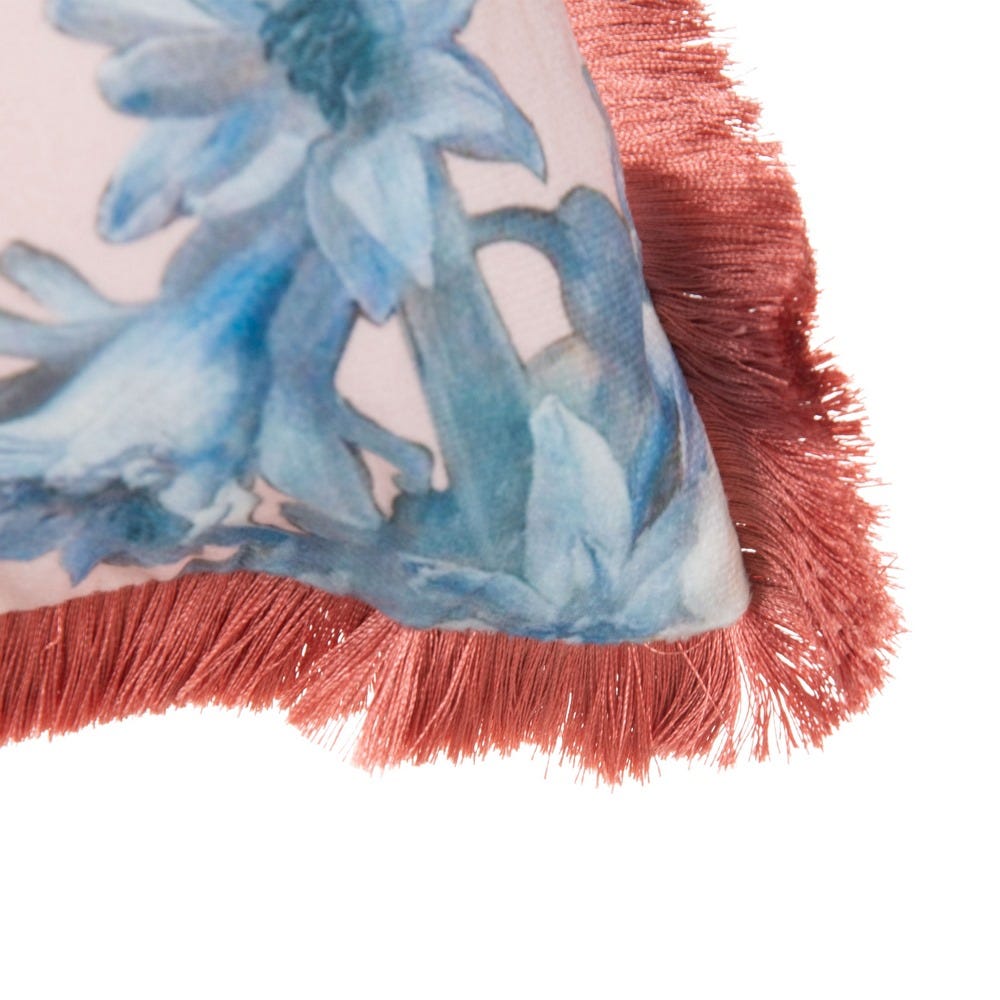 Almofada Quadrada Veludo Rosa 45x45 flores e franja