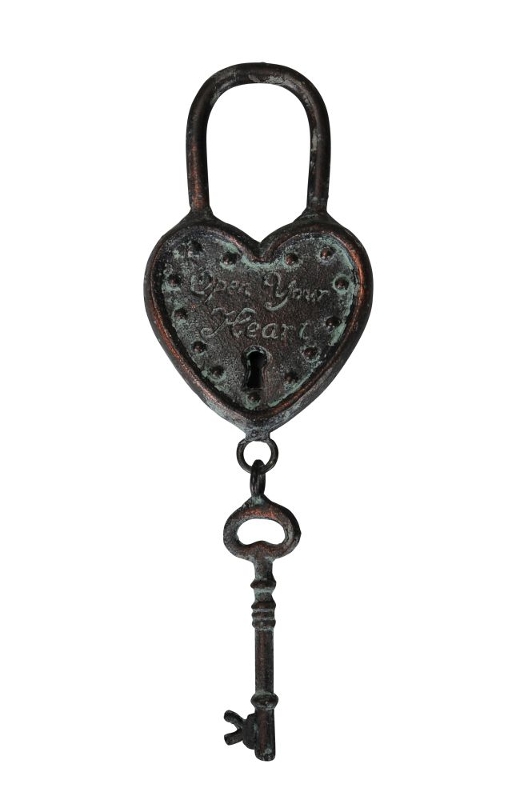 Cadeado metal esverdeado com chave - 9x2,5xH27cm