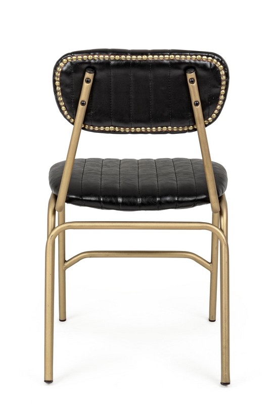 ESTRUTURA DE AÇO REVESTIDA PÓ EPÓXI, ESTOFADO DE polipele. VOLTA COM INSERÇÃO DE ESTUDOS DE METAL. ACOLCHOAMENTO DO ASSENTO E ENCOSTO EM ESPUMA DE POLIURETANO, DENSIDADE 21KG / M3.