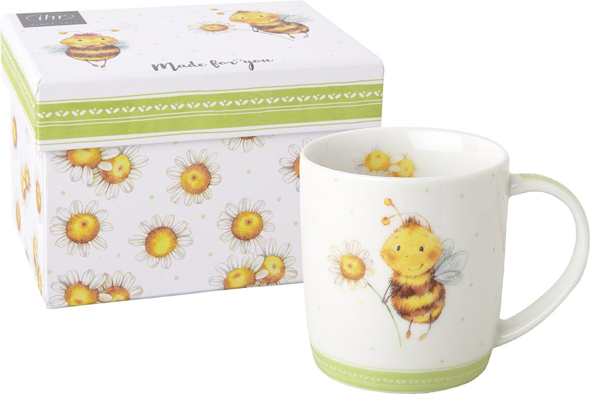 Caixa com caneca de porcelana com Abelhinhas 300ml - Ø8,5X9,5 cm - IHR