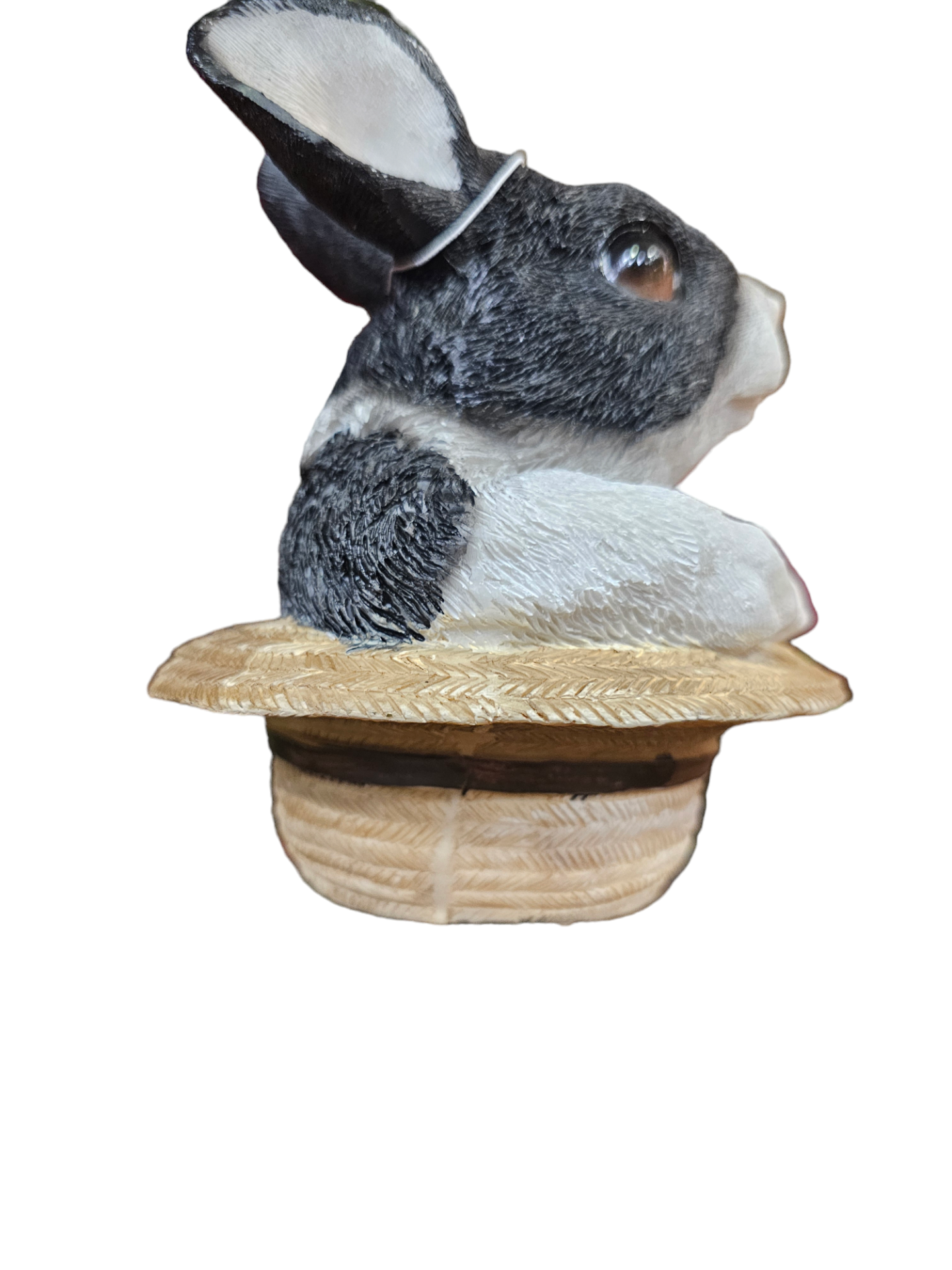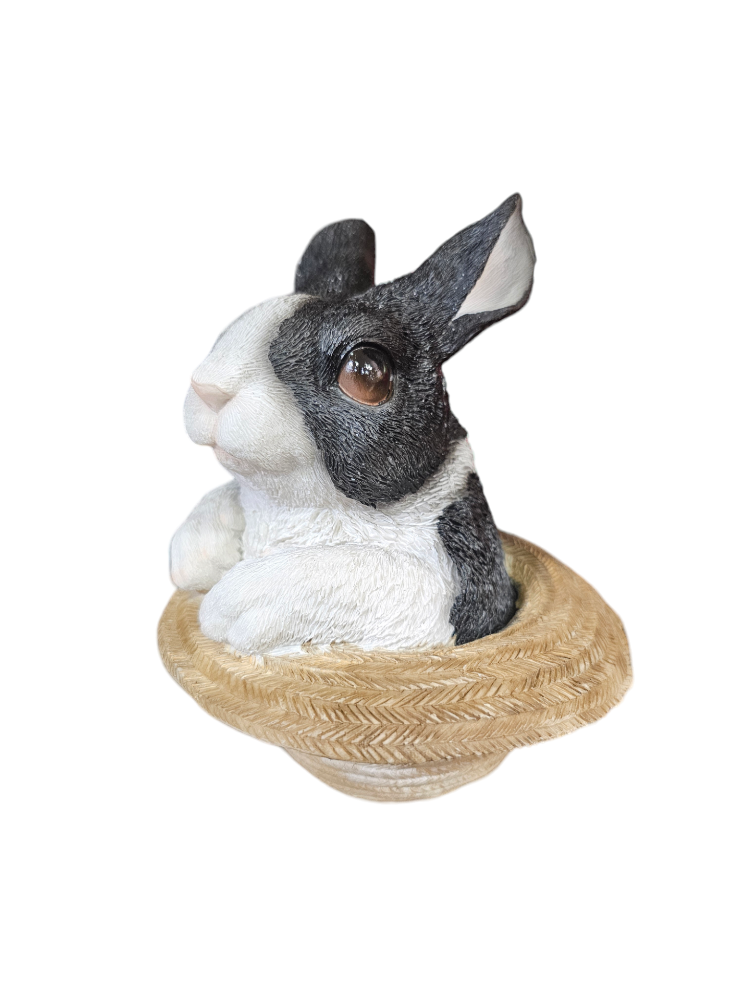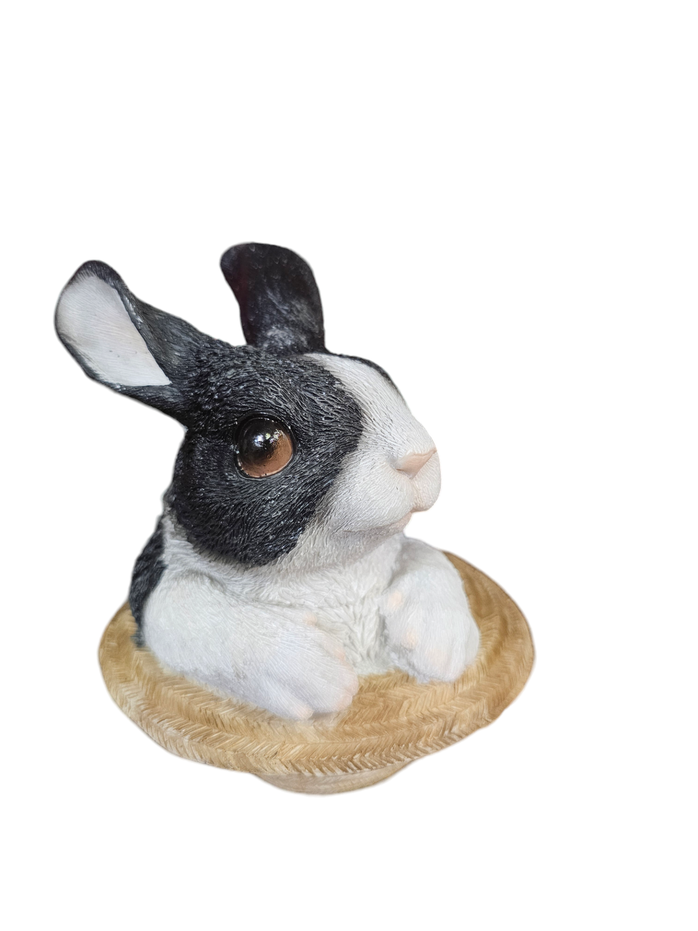 Coelho preto e branco no chapéu - 12 X 12 X 14 CM