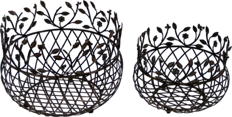 Conjunto 2 cestos ferro, fruteiro centro de mesa
