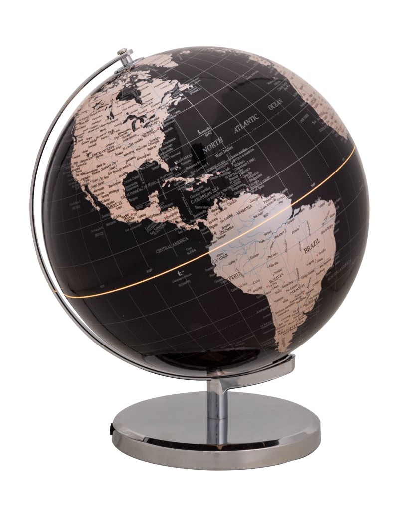 Globo Terrestre c/ Luz Prata e Preto Grande