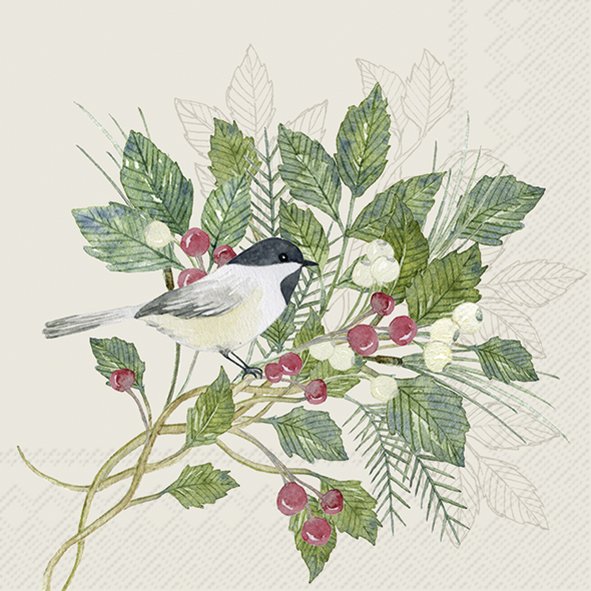 Guardanapos de papel Brancos com Passarinho com bagas - IHR Cocktail