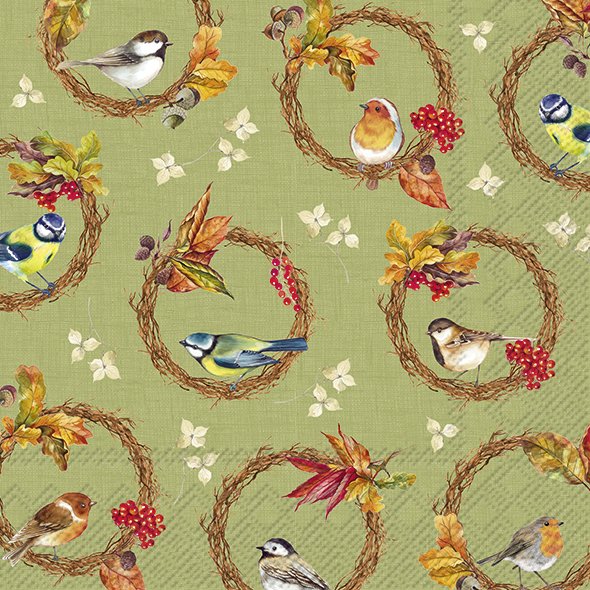 Guardanapos de papel Coroas de natal com passarinhos- IHR