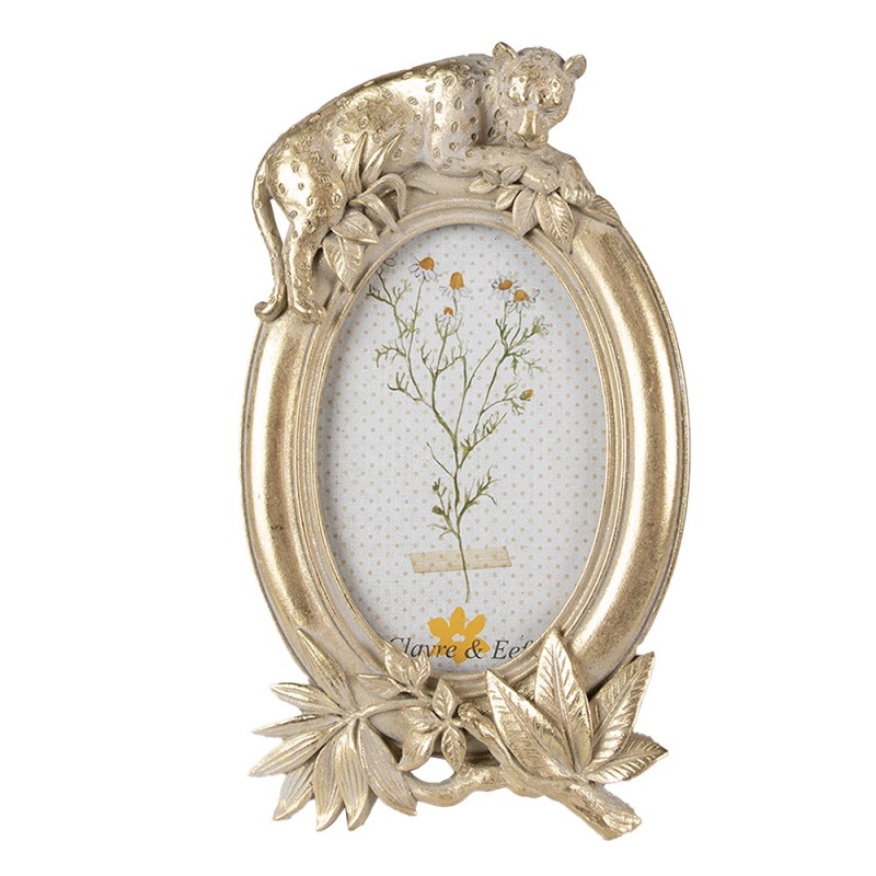 Moldura Oval Dourada Leopardo. Moldura de tamanho 15x2x24 cm para fotografias com 10x15cm
