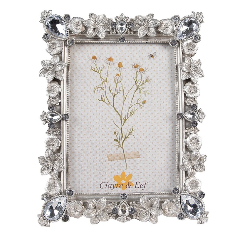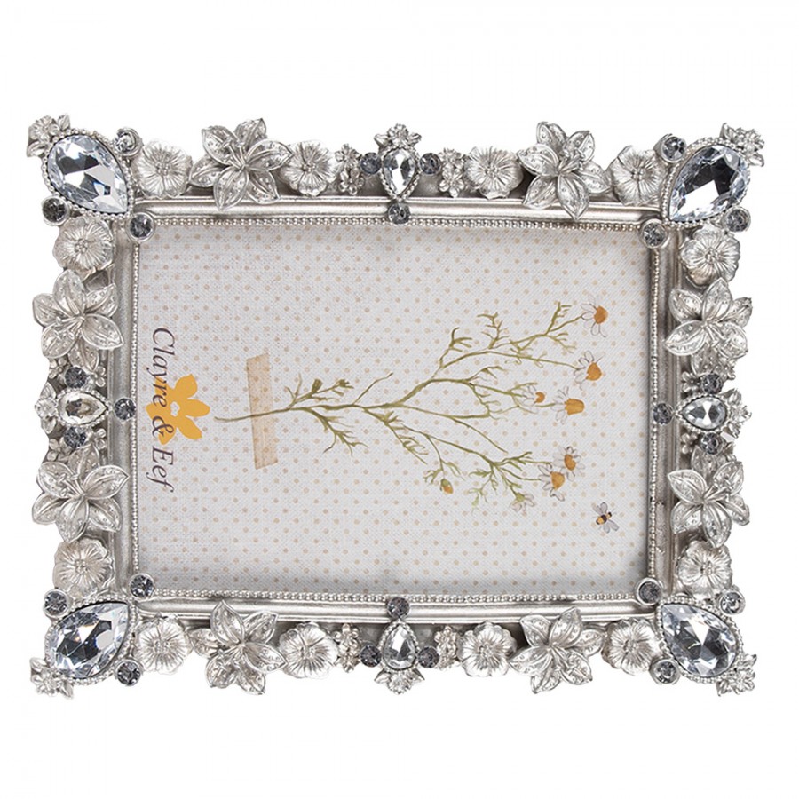 Moldura decorativa prateada com motivos florais. Esta moldura pode ser colocada tanto na posição vertical como na horizontal. É uma bela decoração para qualquer interior Moldura de tamanho 16x4x25 cm para fotografias com 10x15cm