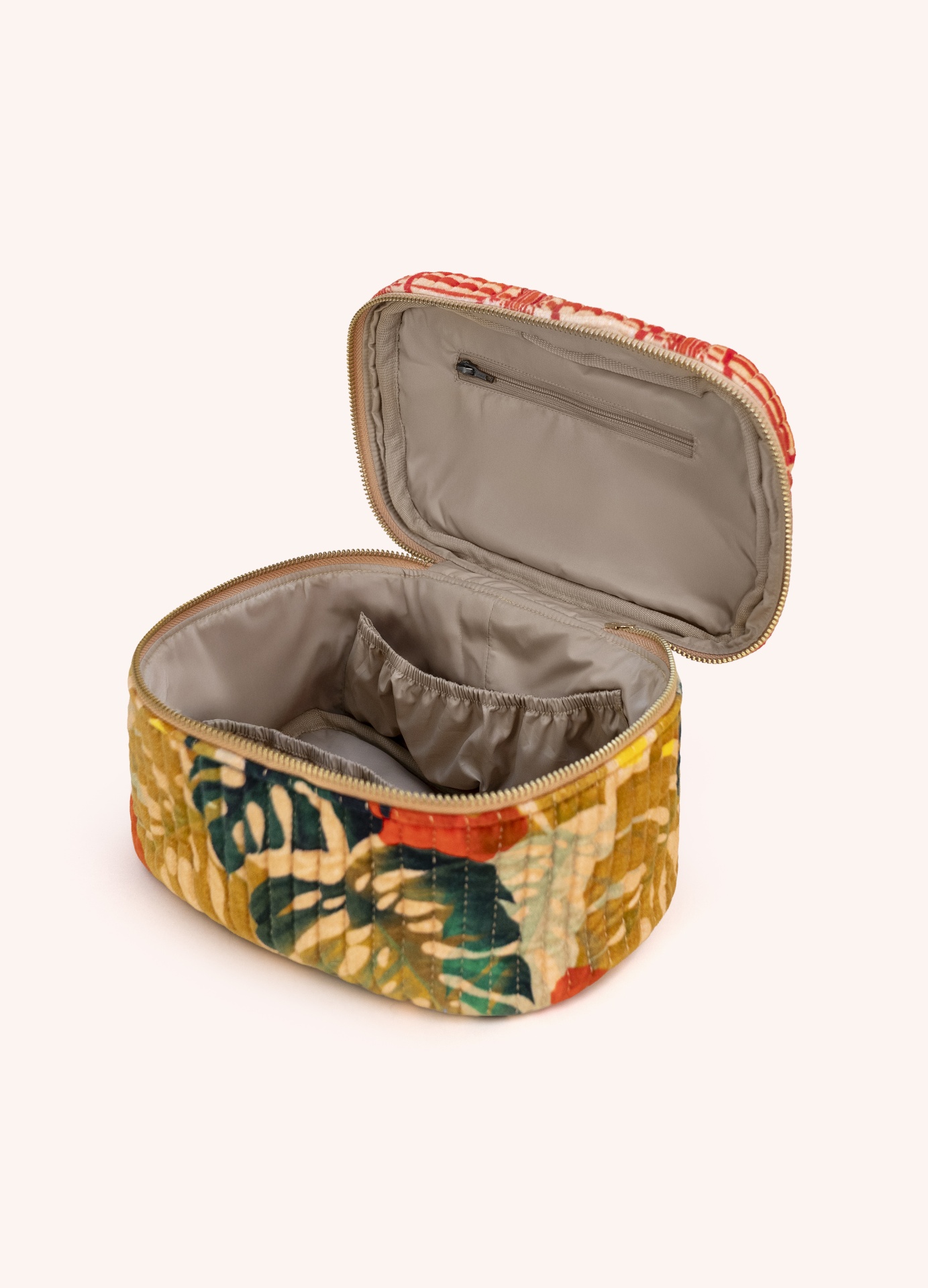 Necessaire de Veludo acolchoado Exotic Leaves - Powder