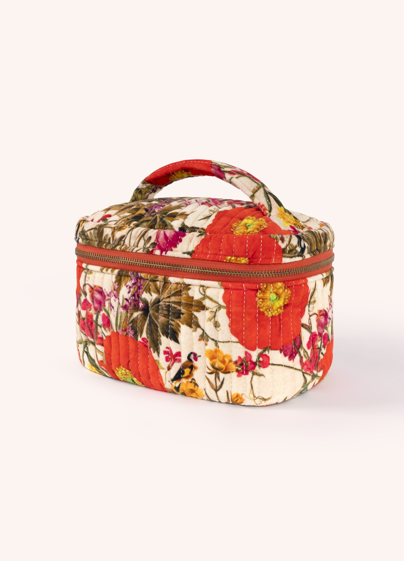 Nada transmite luxo como o veludo acolchoado, especialmente quando combinado com o nosso design exclusivo Fine Flowers. Deixe-se encantar pelas flores neste elegante e sofisticado estojo de maquilhagem em veludo acolchoado. Com certeza, evocará a sensação de passear por jardins floridos com pessoas queridas sob o sol da manhã. Intemporal e feminino na mesma medida, fará certamente com que qualquer pessoa presenteada sorria e acrescentará glamour ao seu dia a dia. Tenha os seus cosméticos à mão com estilo, enquanto a sensação de verão permanece durante todo o ano! Compre já.