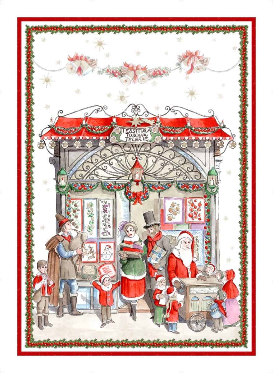 Pano de Cozinha Linho Montra de Natal Vermelho - Tessitura