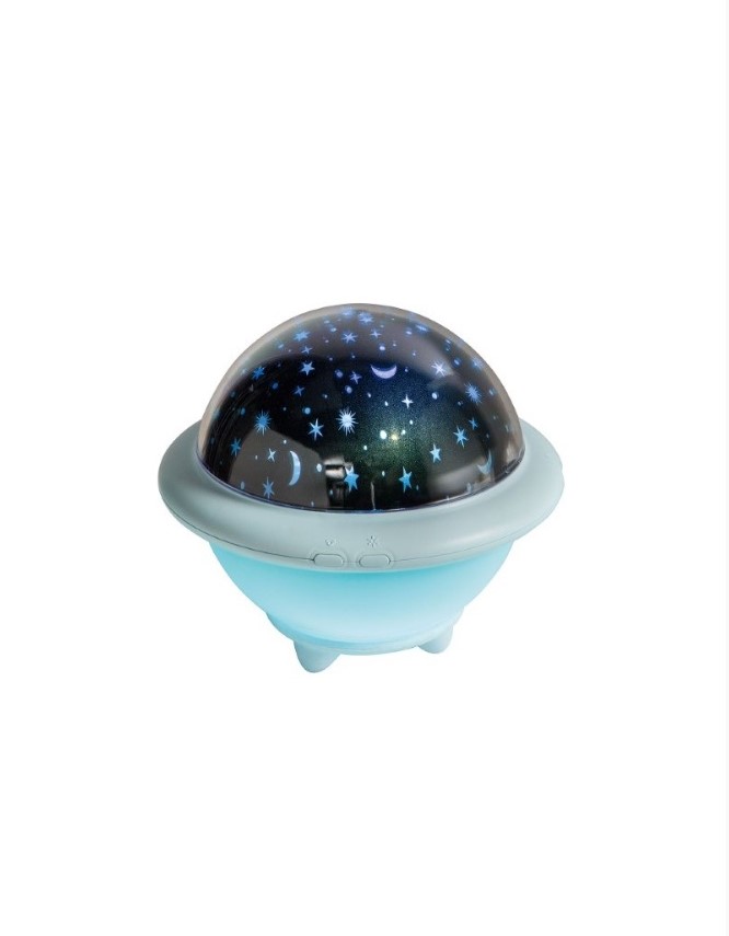 A fantasia no poder com estrelas, mares e mísseis espaciais para dar cores e emoções. A lâmpada ufo em abs e silicone - com três películas sortidas - é a companheira ideal para o descanso. São duas combinações possíveis de iluminação, uniforme na parte inferior e projeção na parte superior, com três propostas temáticas capazes de conciliar sono com emoção.