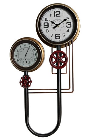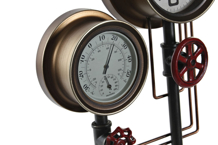 Relógio de Parede com termometro funciona com 1 pilha +AA as roldanas são decorativas com apontamento vermelho que lhe confere um toque industrial prefeito para todos os espaços desde escritorios a estabelecimentos comerciais.