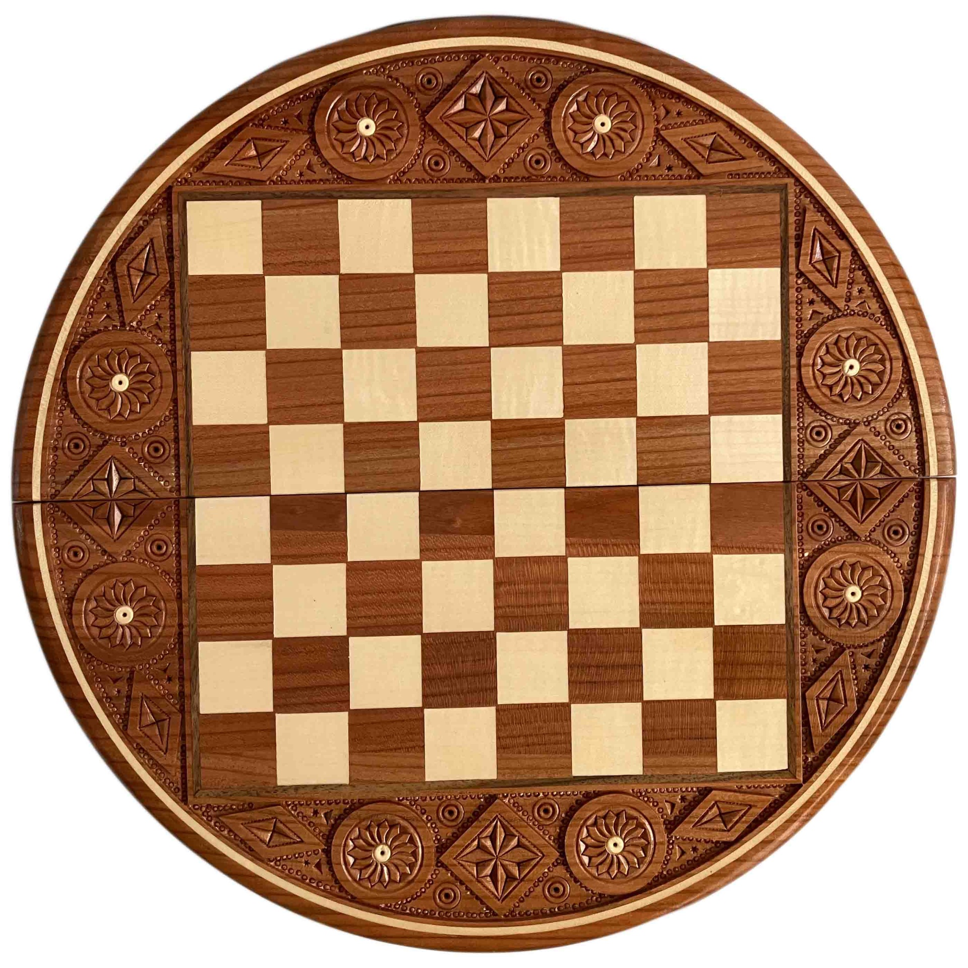 Tabuleiro de Xadrez Redondo Esculpido