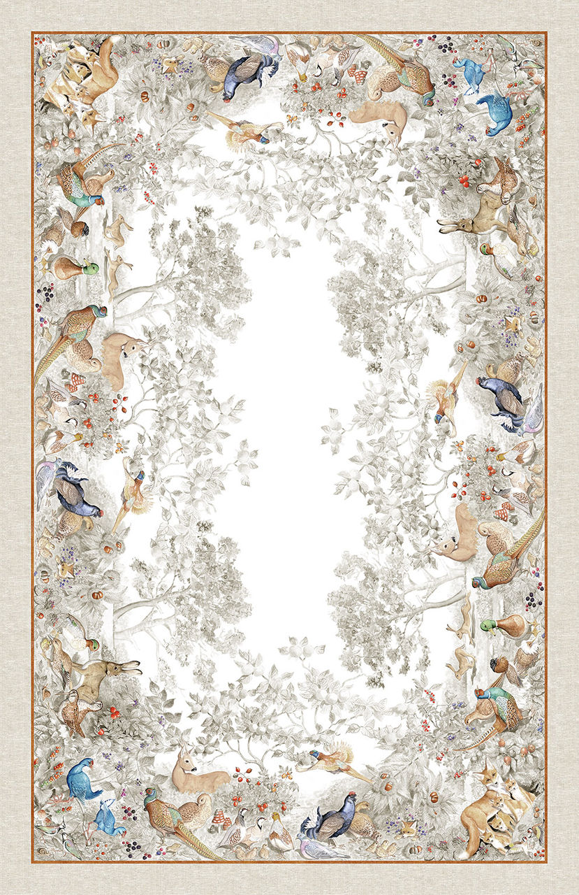Esta toalha de linho elegante apresenta um design encantador com delicado de animais e aves. As ilustrações em tons suaves de cinza e cores vibrantes trazem um toque de natureza para a mesa, criando uma atmosfera acolhedora e sofisticada. Perfeita para ocasiões especiais ou para adicionar charme ao seu ambiente diário, esta toalha de linho é uma peça única que combina beleza e funcionalidade.