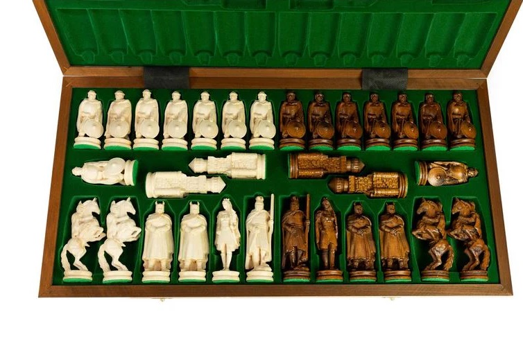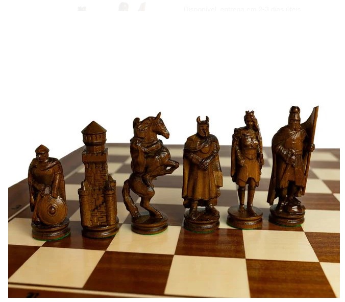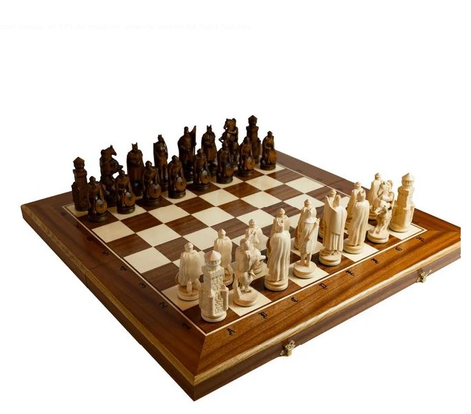 Xadrez com peças esculpidas em Madeira